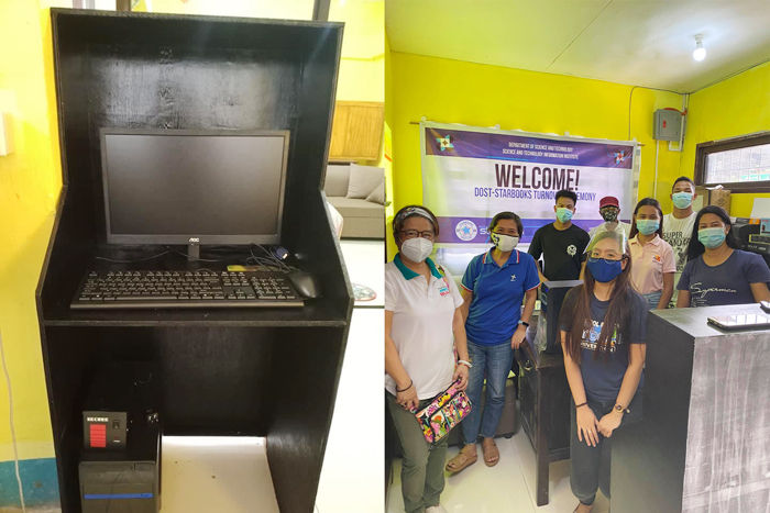 Retrato sa wala, desktop computer na pigdonar kan Office of the Vice President (OVP) sa SK Council kan Barangay Sabang, Calabanga, Camarines Sur. Retrato sa too mga staff kan OVP sa pamamayo ni Babet Lavadia, Senior Area Officer kan Angat Buhay program ni VP Leni Robredo na nag-turn over kan desktop sa Brgy. Sabang.