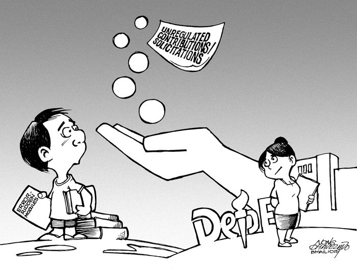 It has been overlooked that solicitations initiated by the school teachers are very convenient tools for corruption. Small as the amounts maybe, the consequence sends a very disturbing signal. Teachers are in effect being encouraged to engage in irregularities