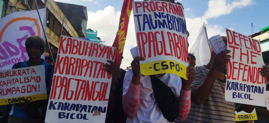 Protesta kan mga progresibong grupo na pinangenotan kan Karapatan Bicol asin Bayan CamSur sa komemorasyon kan International Human Rights Day ginibo sa Plaza Oragon kan Ciudad nin Naga. (Retrato kan Bayan CSur)